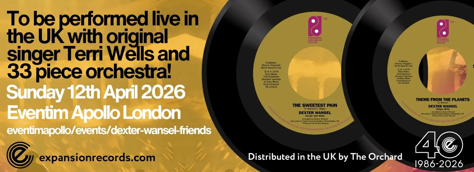 Two of the most iconic Dexter Wansel recordings are being issued for the first time in the UK back-to-back on 7” single. “The Sweetest Pain” features singer Terri Wells who will be in the UK to perform it live with Dexter with his 33 piece MFSB tribute orchestra on Sunday 12th April at the Eventim Apollo. “Theme from The Planets” opens with a drum break that became one of the most sampled beats in hip-hop history - heard in tracks by Kanye West, Lil Wayne, Drake, Rick Ross, J. Cole, Ice-T, and many more.